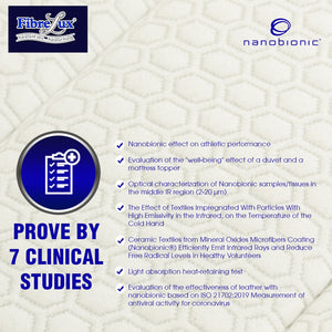 Fibrelux Signature Nano Actibon embedded Activated Carbon into fibre sheets which contains more carbon than only on the fabric ticking. Acti-Bon absorbs harmful substances, produces negative ions which helps in enhancing immunity, activate body cells, purify blood system and regulate human nervous system.
